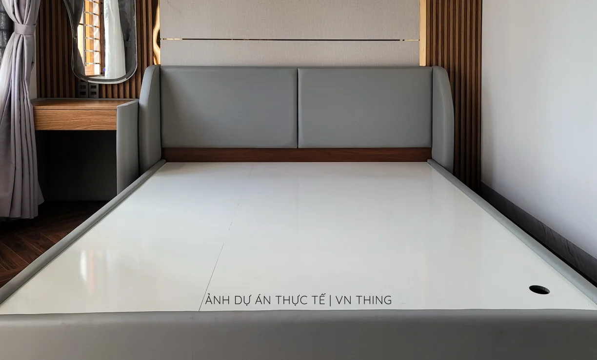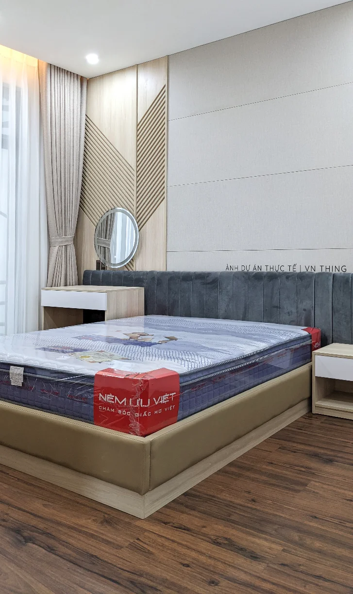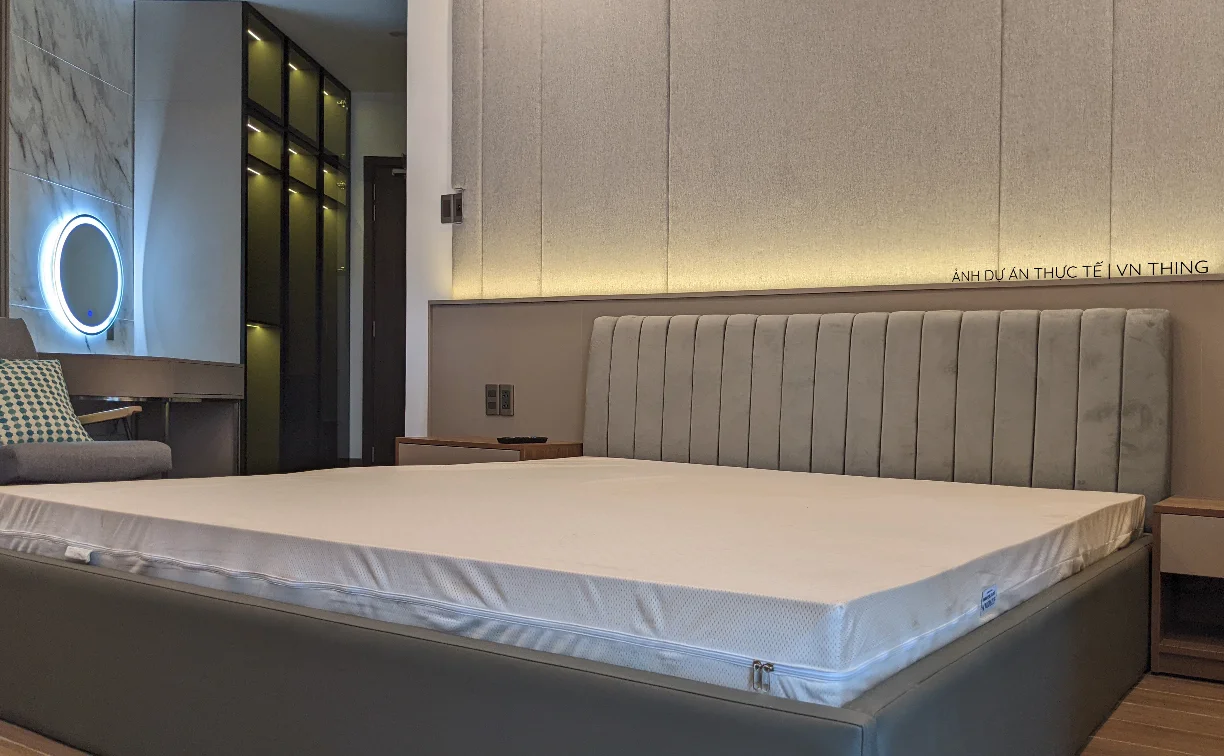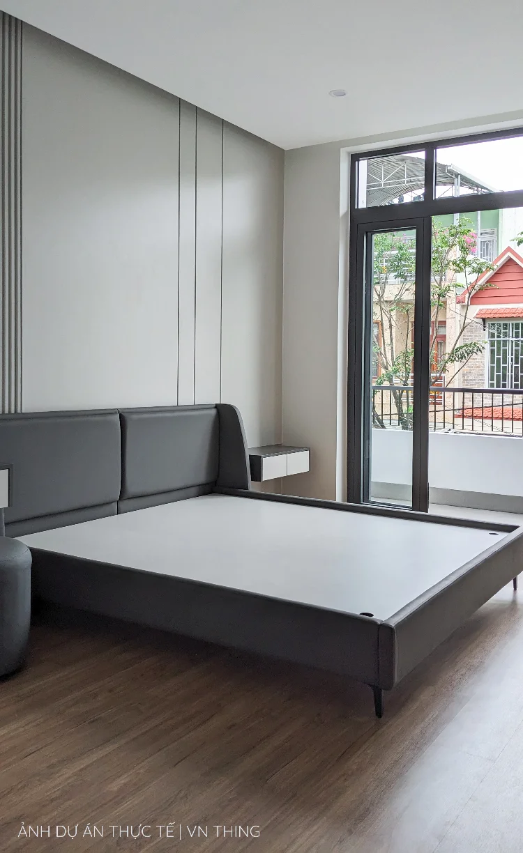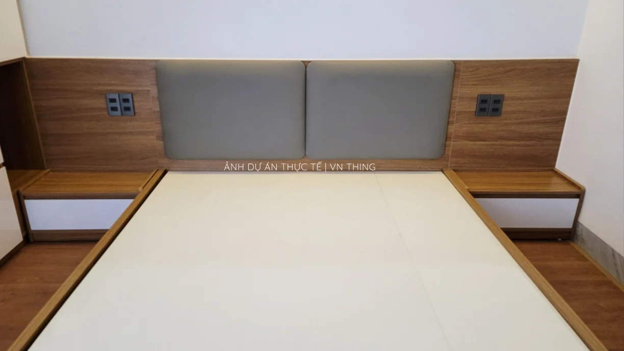 Nếu giường ngủ của bạn có ốp thêm nệm ốp đầu giường hoặc nệm ốp quanh thành giường, thì THING sẽ tính chi phí thi công tùy theo khối lượng của nệm.