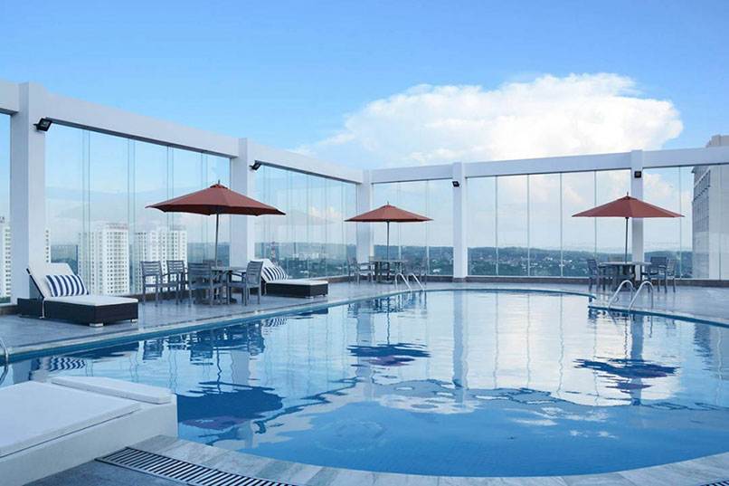 Thứ hai, biến không gian thành nơi nghỉ dưỡng đẳng cấp. Không chỉ những mẫu hồ bơi sân vườn mới thể hiện được độ bền bề thế, hoành tráng của nhà biệt thự. Với thiết kế hồ bơi trên sân thượng bạn cũng có thể khẳng định được đẳng cấp của gia chủ. Thiết kế hồ bơi vô cực mang lại không gian nghỉ dưỡng hài hoà và gần gũi thiên nhiên.
