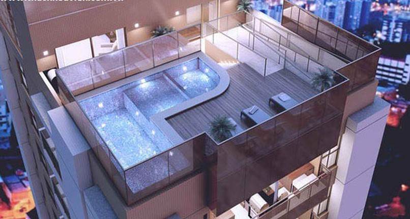Thiết kế hồ bơi trên sân thượng là vị trí tốt bởi đó là nơi tiếp nhận được nhiều ánh sáng mặt trời nhất, đồng thời không gây ra hiện tượng ánh sáng soi xuống phản chiếu vào nhà, không tốt về mặt phong thuỷ.