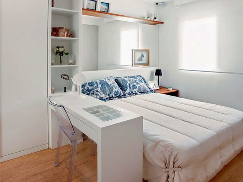 Bố trí phòng ngủ 3x3m không thể chịu được nhiều phụ kiện rườm rà. Những khung hình khổng lồ, sự phong phú của các bức ảnh, kệ và các yếu tố tường khác sẽ không có lợi cho việc mở rộng, chúng đóng vai trò làm căn phòng trở nên lộn xộn hơn.