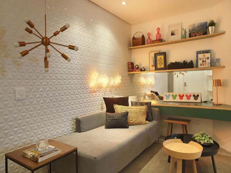 Một bức tranh hoặc gương là đủ để trang trí một căn phòng, kệ có thể được treo và không nên lấp đầy.
