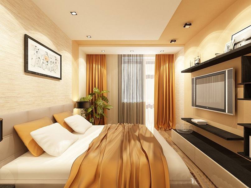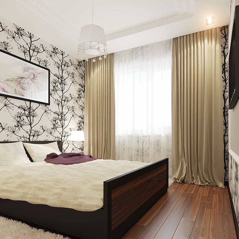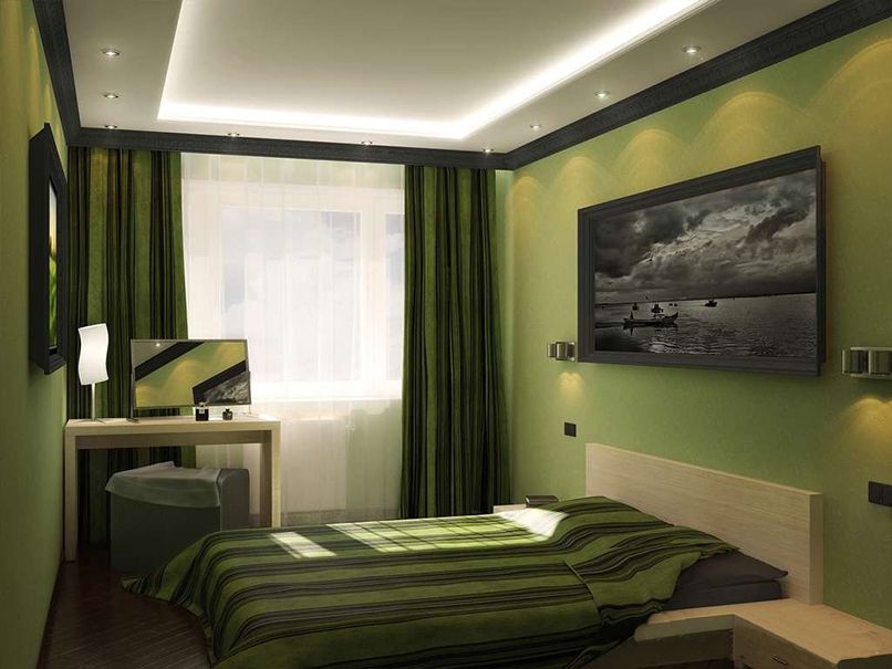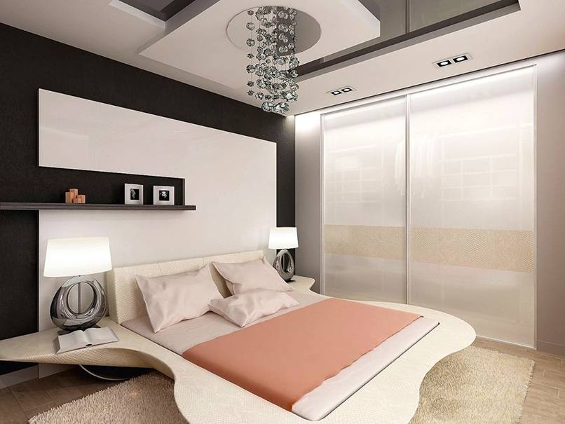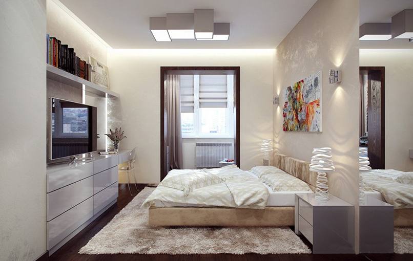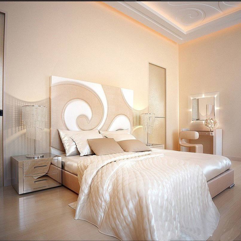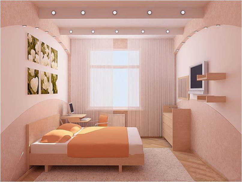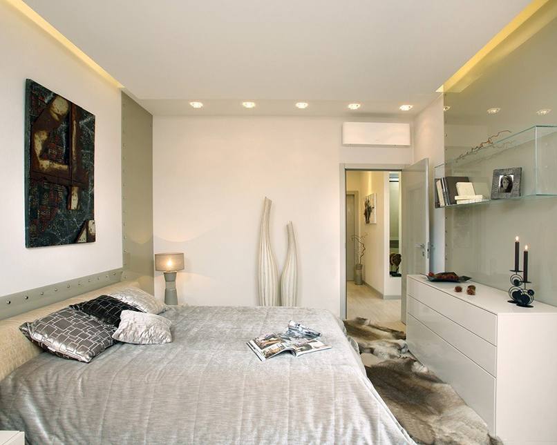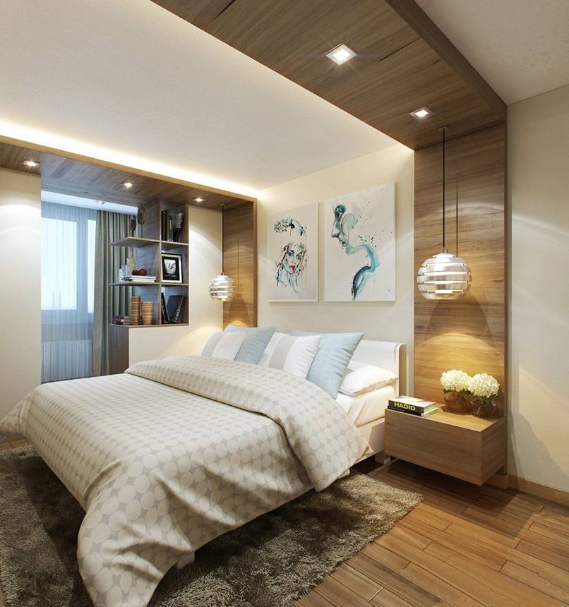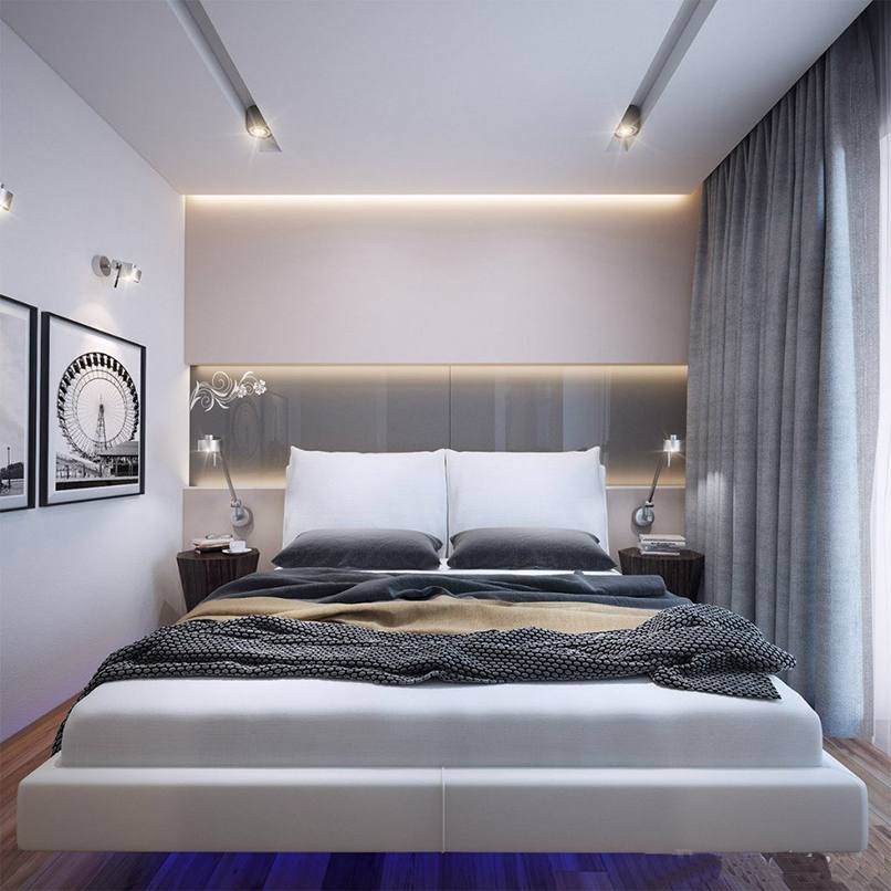 Ánh sáng được sử dụng trong trang trí phòng ngủ nhỏ như một cách mang lại cái nhìn trực quan, làm rộng không gian. Từ vật liệu cho các bức tường chọn sơn, giấy dán tường. Nếu một bề mặt phẳng hoàn hảo, sơn bóng là hoàn hảo.
