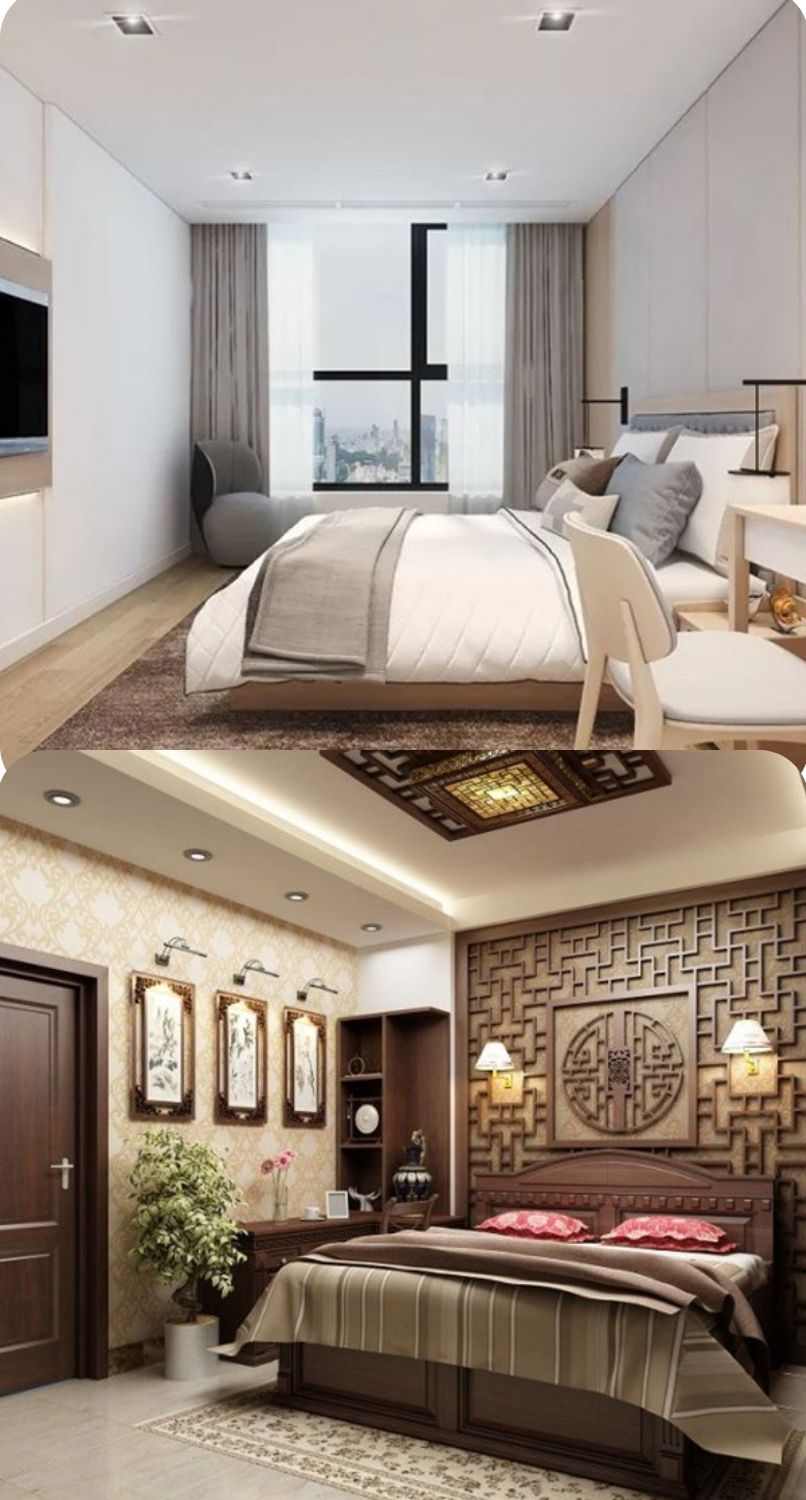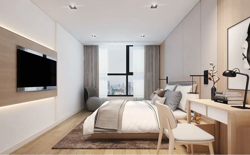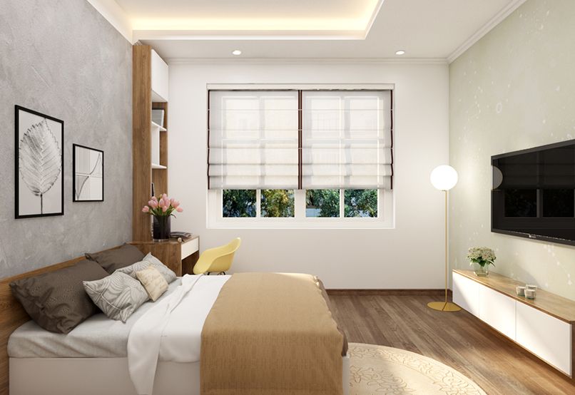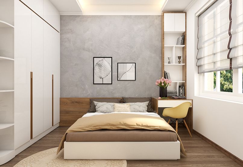 Bạn nên bài trí phòng ngủ tinh gọn với những nội thất cần thiết như giường ngủ, tủ quần áo, tủ kệ,… Nội thất nên đơn giản để đảm bảo căn phòng luôn thông thoáng, ngăn nắp.