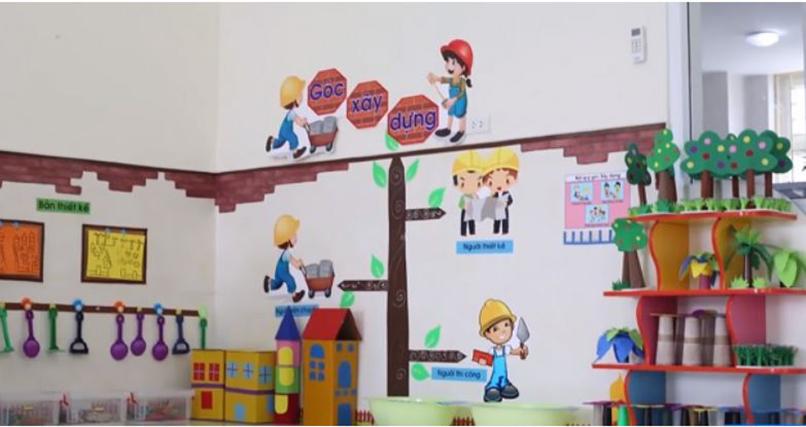 Thứ hai, cách bố trí góc xây dựng nhằm phát triển khả năng sáng tạo cho bé. Đây là khu vực có thể cho bé cơ hội nhập vai vào nhiều vị trí khác nhau để trẻ nhanh chóng phát huy tốt tiềm lực của bản thân.