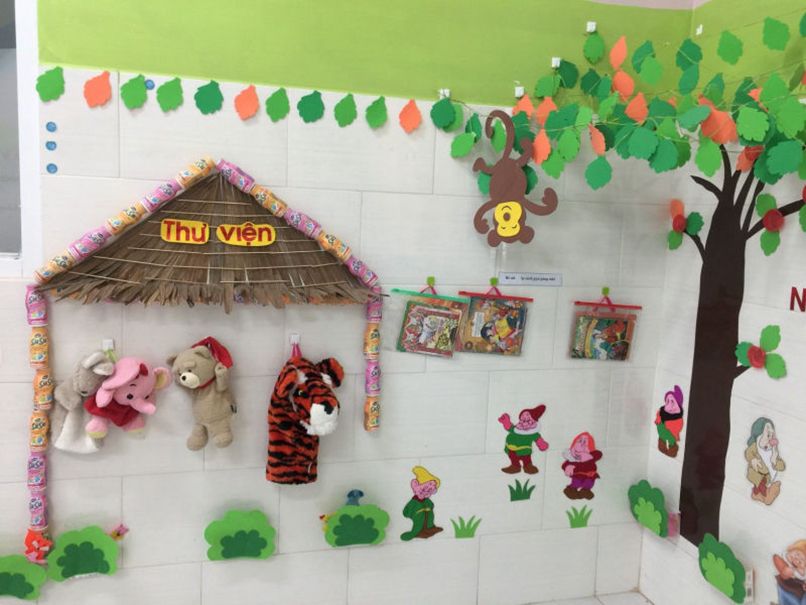 Thứ tư, trang trí góc thư viện mầm non đẹp. Thư viện là một trong những lớp có vai trò vô cùng quan trọng trong phòng học cũng như toàn thể ngôi trường. Đây là nơi giúp trẻ khám phá, trải nghiệm, tìm hiểu những kiến thức cần thiết để nâng cao tính sáng tạo của bản thân.