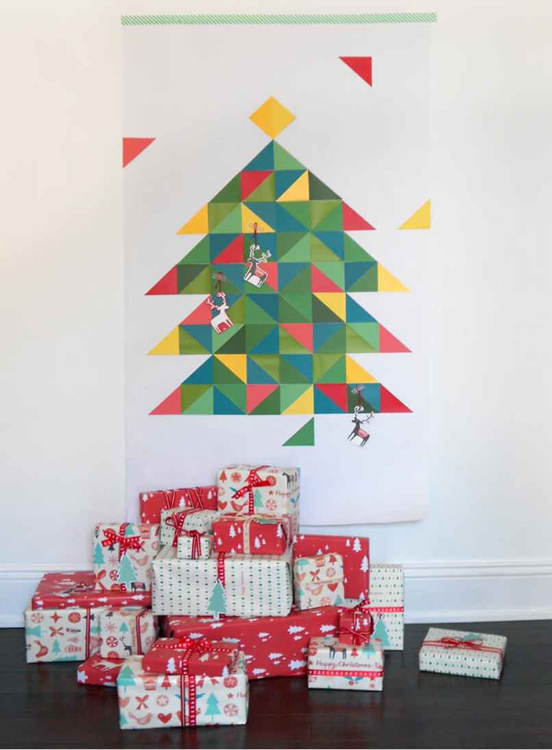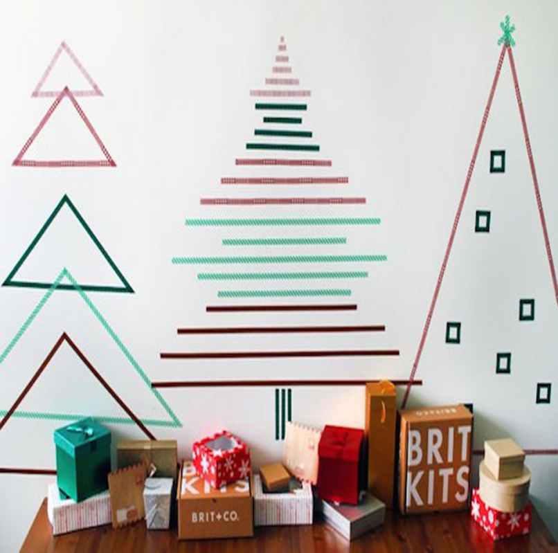 Đơn giản chỉ cần mua một hoặc hai cuộn với màu sắc ưa thích của bạn (băng vàng là một gợi ý cho kỳ nghỉ giáng sinh lấp lánh) và băng một hình dạng cây trên tường của bạn.