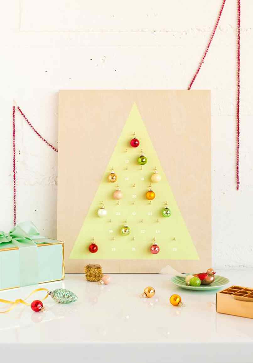 Đối với một cái gì đó hiện đại và ấn tượng, hãy thử làm bức tranh cây thông Noel hình học này. Việc sử dụng các màu sắc tươi sáng và bổ sung các đèn nháy sẽ mang đến cho phòng khách 1 cảm giác đầy ấn tượng.