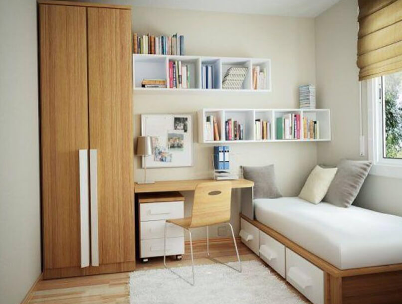 Bạn có thể bố trí bàn học, bàn làm việc ở nơi có không gian nhỏ, thông thoáng. Như vậy mới có thể đảm bảo được hiệu suất học tập và làm việc. Với giường ngủ hãy chọn một chiếc vừa đủ nằm để tiết kiệm tối đa không gian. Gian bếp thì nên bố trí nơi xa để không làm mùi thức ăn ám mùi vào quần áo,….Đó là gợi ý cho cách trang trí phòng trọ nhỏ hẹp bạn nên tham khảo.