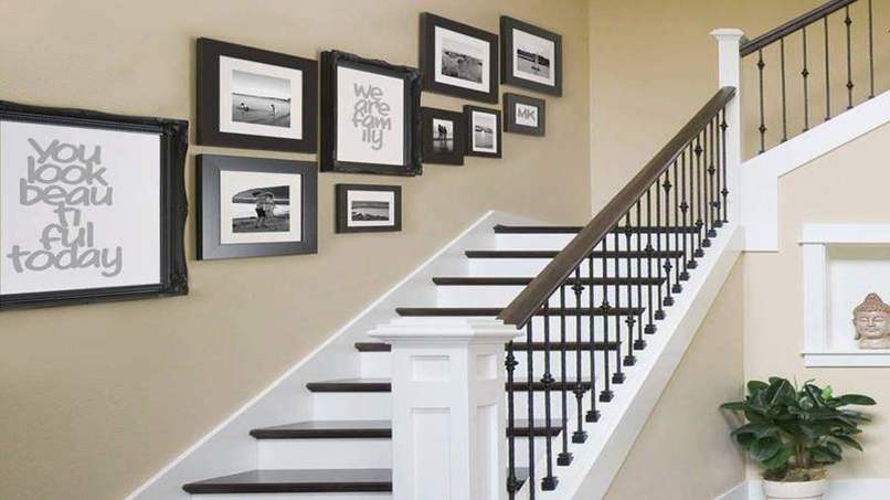 - Tường hông cầu thang: Đây là nơi có nhiều không gian trống rất thích hợp với việc treo ảnh gia đình. Theo phong thủy, cầu thang đại diện cho sự tiến lên nên việc treo tranh gia đình ở phần tường này mang lại nhiều vận may và tài lộc cho gia chủ.