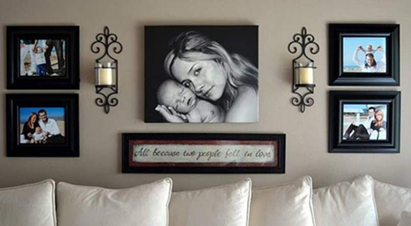Có khá nhiều cách sắp xếp bố cục của ảnh gia đình, có thể là tham khảo các cách sắp xếp như: Loại khung ảnh, kích cỡ, ảnh gia đình chụp theo thời gian, kiểu ảnh chụp… Sử dụng trọn vẹn bức tường ở một phía để treo chúng lên chắc chắn sẽ vô cùng ấn tượng thông qua trang trí nhà với ảnh gia đình. Hoặc sử dụng đèn trang trí bên cạnh những bức ảnh gia đình này sẽ tạo nên một không gian lung linh, đầy điểm nhấn.