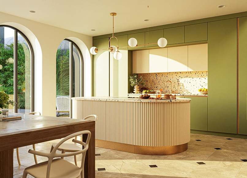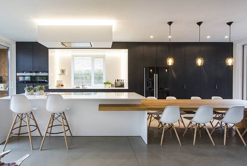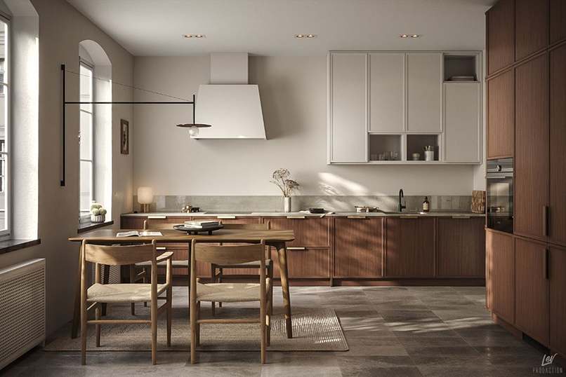 Với những phòng bếp có hai cửa sổ thì bạn không nên thiết kế hai cửa sổ đối nhau hoặc cửa sổ đối cửa chính.