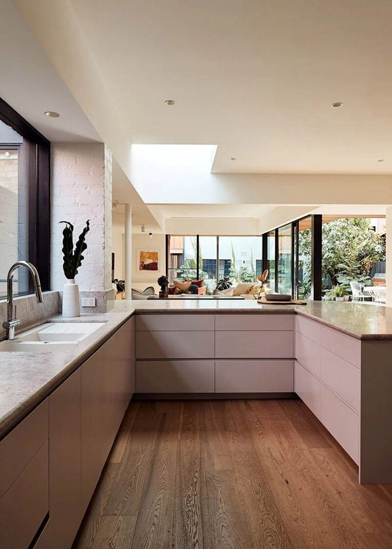 - Tận dụng ánh sáng tự nhiên: Ánh sáng tự nhiên từ bên ngoài tràn vào không gian phòng bếp qua chiếc cửa sổ sẽ khiến bạn tiết kiệm được chi phí đèn điện. Ánh sáng tự nhiên cũng góp phần “thổi hồn” tăng thêm vẻ đẹp thẩm mỹ của cả không gian.