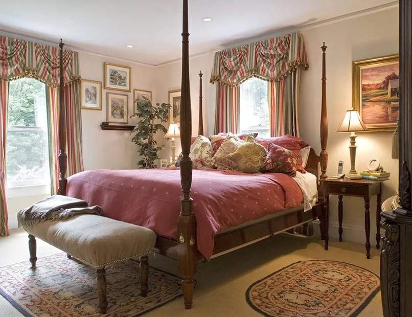 - Trang trí phòng ngủ với giường 4 cọc. Mẫu giường này có thể tham khảo để tăng thêm sự đa dạng cho phòng ngủ của mình. Với thiết kế 4 cọc này bạn có thể tận dụng để giăng thêm màn hoặc mùng tiện lợi hơn.