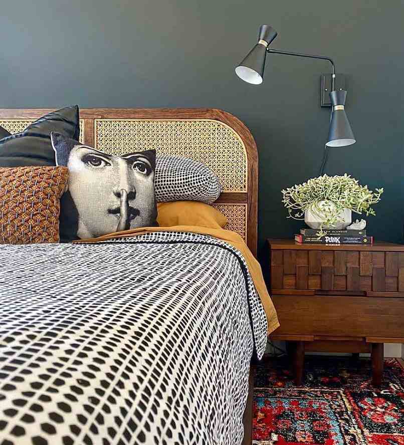 - Trang trí phòng ngủ Vintage với chất liệu mây, cói. Những phụ kiện từ mây tre đẹp mắt này sẽ mang lại một không gian hoàn toàn Vintage.