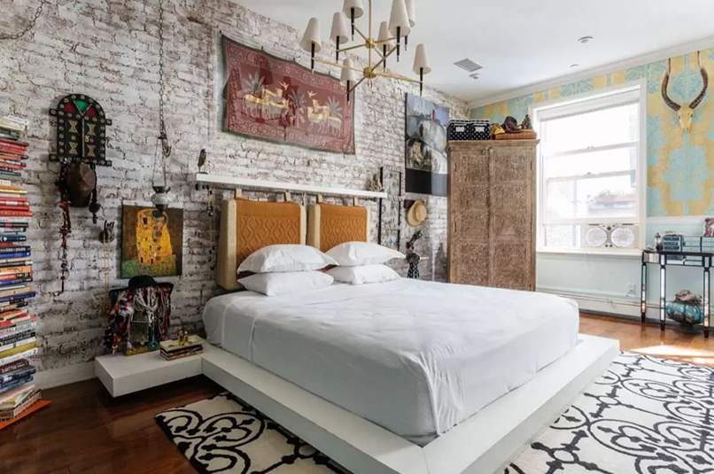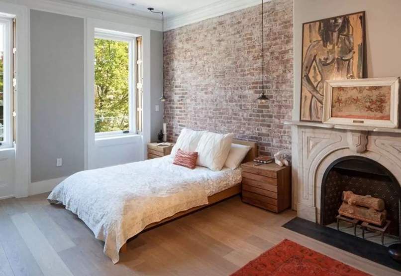 - Decor phòng ngủ vintage với tường gạch. Đây là cách trang trí làm cả không gian “nhuốm màu” cổ xưa cho cả không gian.