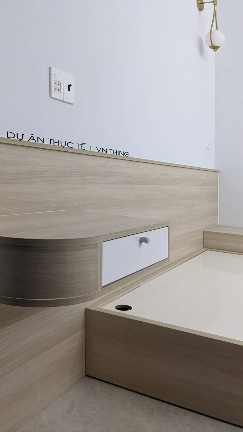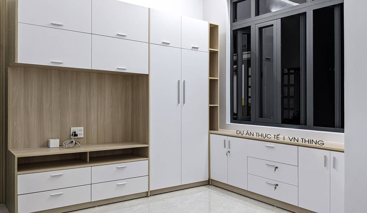 THING đã thi công tủ bếp cho vợ chồng anh í từ trước. Sau tiếp tục được anh Tâm giao phó thi công phòng khách và phòng ngủ.