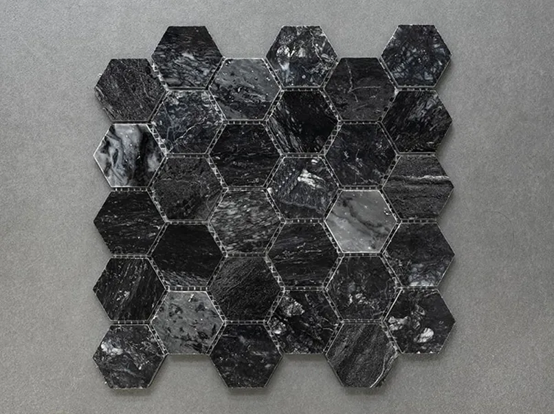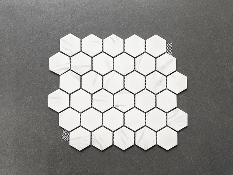 - Gạch mosaic hình lục giác: Kiểu lục giác này cũng chia thành nhiều loại như giác cân, giác nhọn, giác dài.