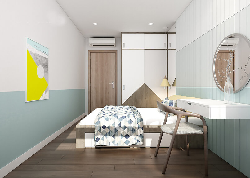 - Màu sắc: Không gian phòng ngủ là nơi riêng tư, nghỉ ngơi của mọi người nên cần chọn màu sắc dịu nhẹ nhưng vẫn phù hợp với sở thích của chủ nhân căn phòng.
