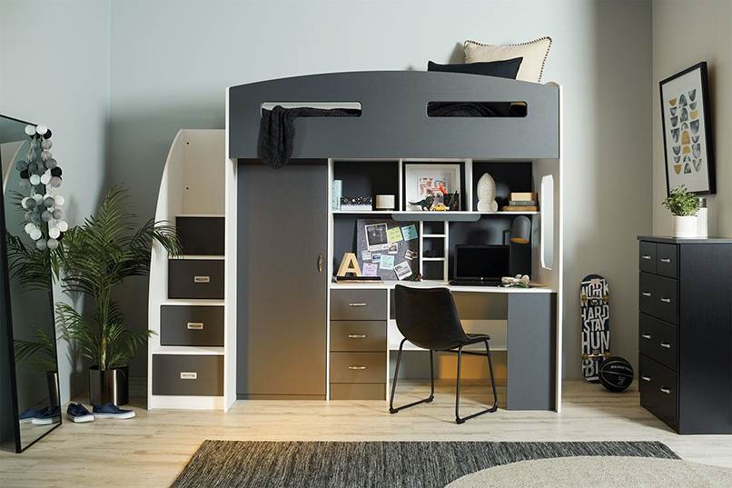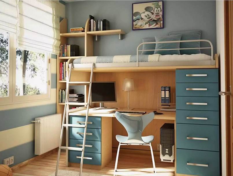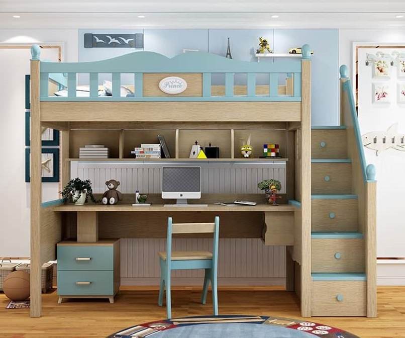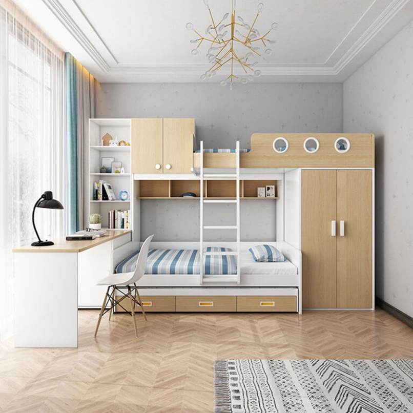 Ngoài tiết kiệm được diện tích mặt sàn thì giường ngủ kết hợp bàn học còn có thể kết hợp thêm các món nội thất khác như: tủ quần áo, kệ sách,…