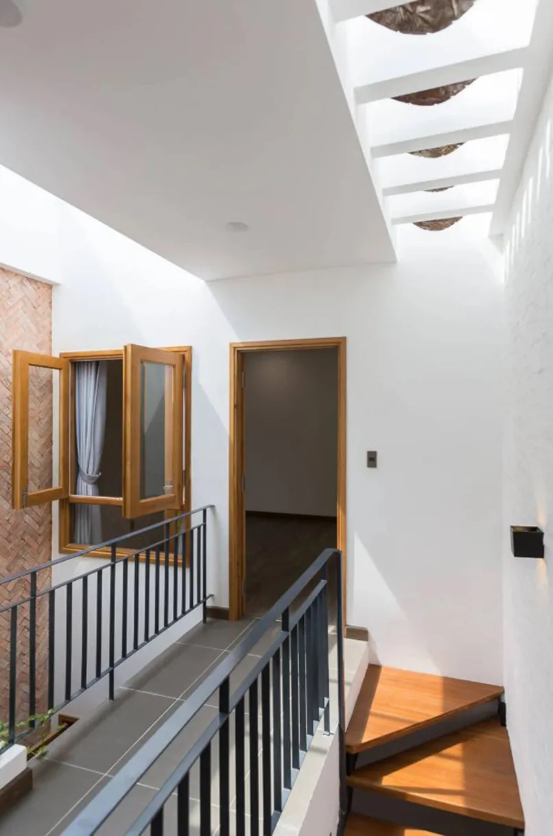 - Khi thiết kế hành lang nhà ống, chiều dài không vượt quá 2/3 chiều dài phòng. Nếu quá dài sẽ làm ảnh hưởng đến cấu trúc công trình, có cảm giác như chia đôi ngôi nhà.