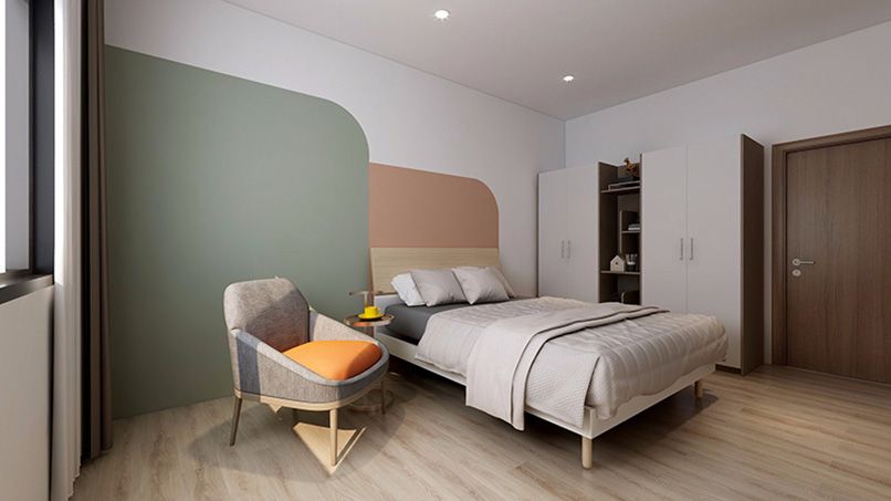 Thứ nhất, đầu giường ngủ sát tường. Đầu giường sát tường và hai bên cần có khoảng trống. Đây là cách kê tạo ra thế tứ linh trong phong thủy. Cách kê này giúp tạo cảm giác vững chãi, chắc chắn và an toàn cho người ngủ. Lúc này, tường sẽ đóng vai trò là lá chắn ngăn lại mọi tiếng động bên ngoài tạo nên sự yên tĩnh, giúp gia chủ ngủ ngon hơn.