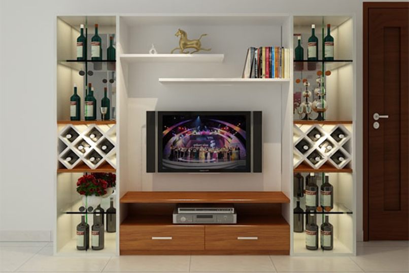 - Ở hai bên tivi (thường là sách hoặc rượu)