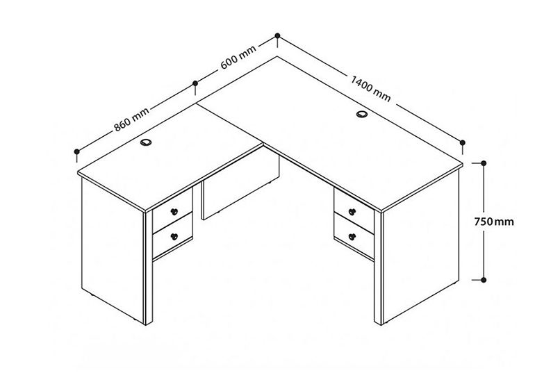 Với dạng bàn này thường không có quy chuẩn kích thước và tùy theo văn phòng, góc phòng làm việc để chọn lựa bàn. Nhưng chúng cũng có những kích thước phổ biến như: