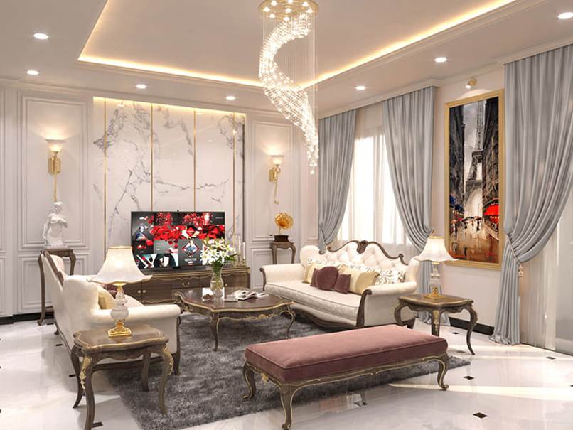 Nội thất kiến trúc tân cổ điển nhất định phải thể hiện được sự mới lạ và các họa tiết phải có điểm nhấn giữa các hoa văn tạo nên sự hài hòa và sang trọng.