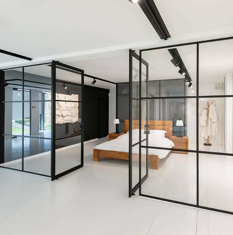 Thứ nhất, tính thẩm mỹ để hài hòa với cả không gian. Vách ngăn phòng ngủ là tấm ngăn văn phòng được thiết kế từ một số chất liệu như: kính, gỗ…. chọn nó sao cho thống nhất với không gian thẩm mỹ của toàn bộ nội thất.
