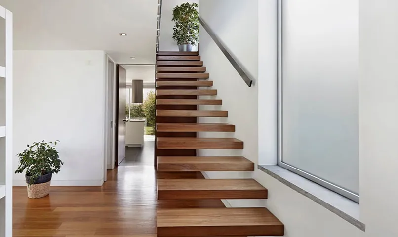 - Cầu thang gỗ: Đây là giải pháp khá phổ biến, tiết kiệm chi phí giá thành, nhân công.