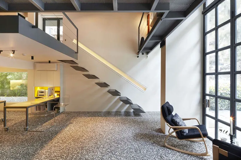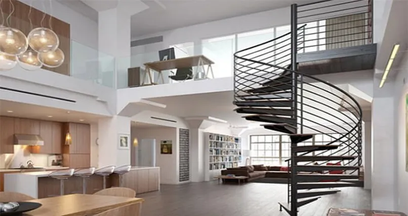 - Cầu thang gác lửng bằng thép: Một chiếc cầu thang được làm toàn từ thép, điển hình trong khu phòng trọ có gác lửng. Vật liệu này sở hữu tính bền, nhẹ, thiết kế không yêu cầu quá nhiều, không quá tỉ mỉ mà giá thành thi công lại thấp.