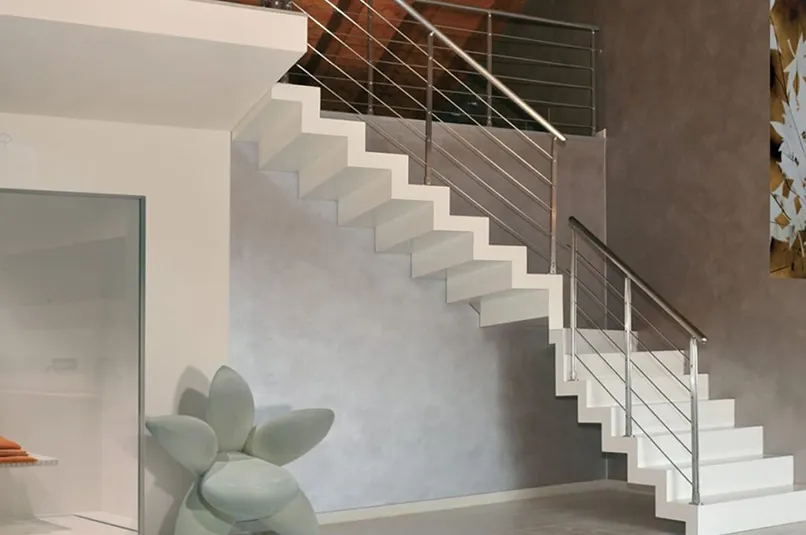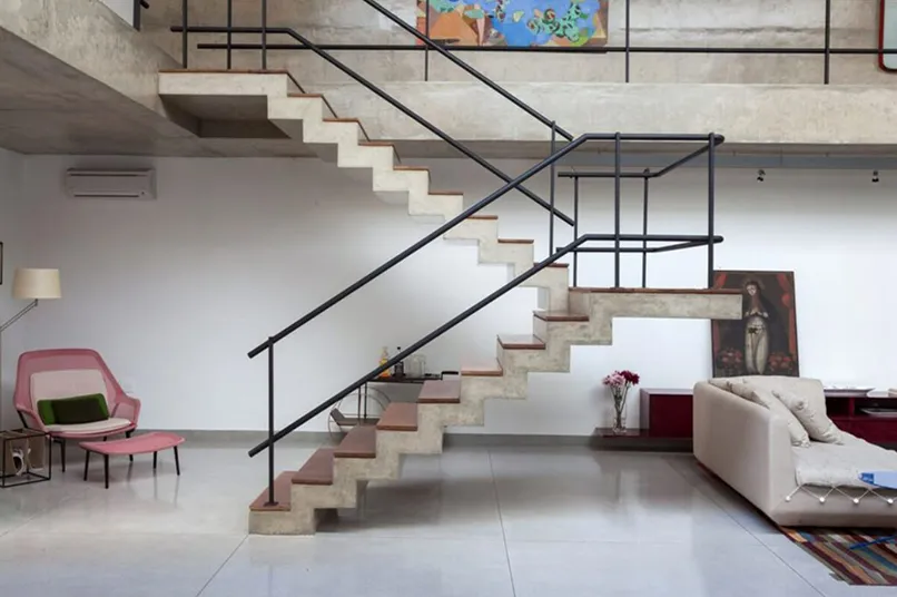 - Cầu thang gác lửng cốt thép bê tông: Loại cầu thang này sở hữu ưu điểm là chi phí thấp, thi công nhanh.