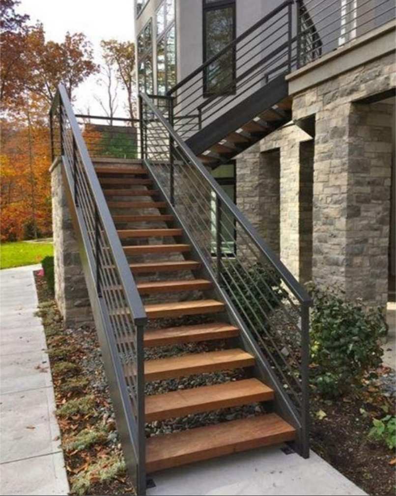 Mẫu cầu thang sắt ngoài trời được thiết kế nhiều ở hai bên hông hoặc ngoài ăn nhà và thường tách biệt với công trình. Vì đặc trưng là ở ngoài trời nên đòi hỏi cần có độ bền cao để có thể chịu được tác động của thời tiết. Nên không phải ngẫu nhiên mà các mẫu cầu thang sắt ngoài trời lại được ưa chuộng như vậy.