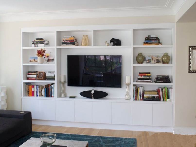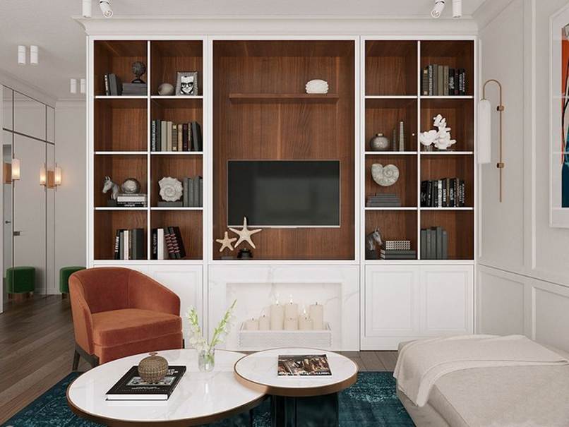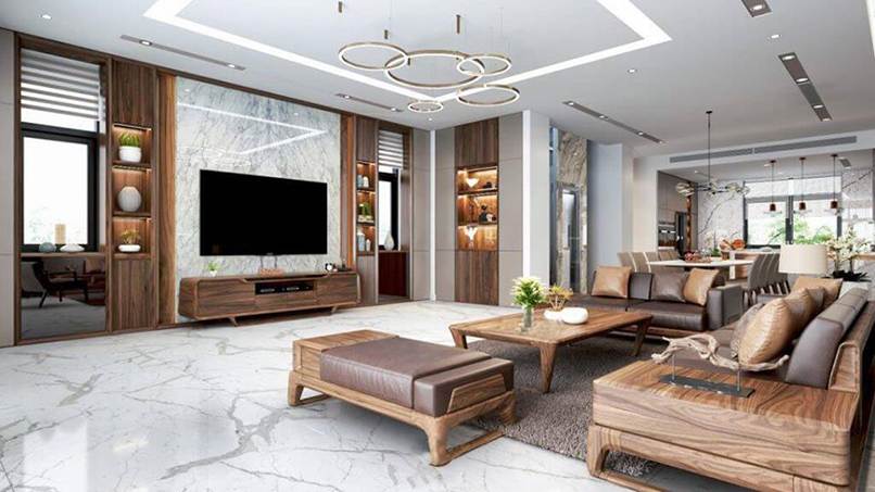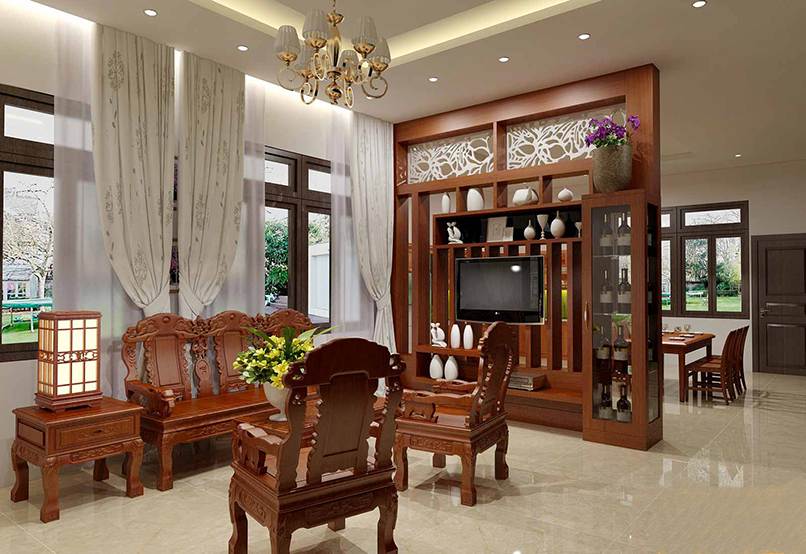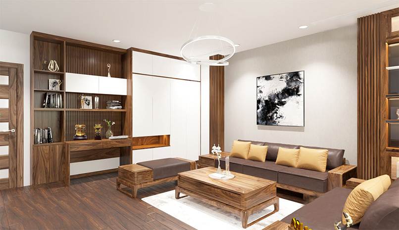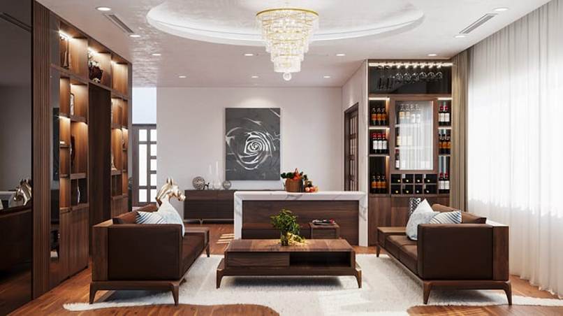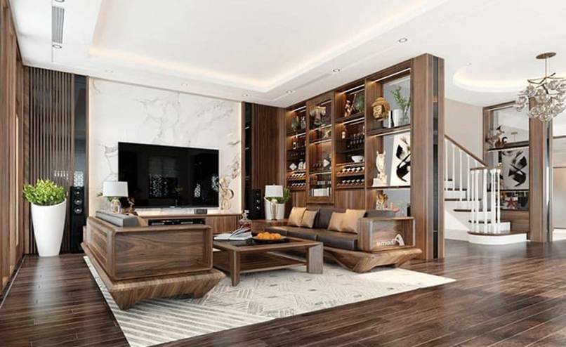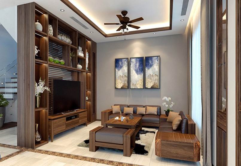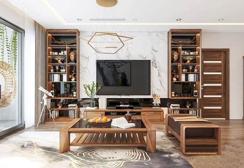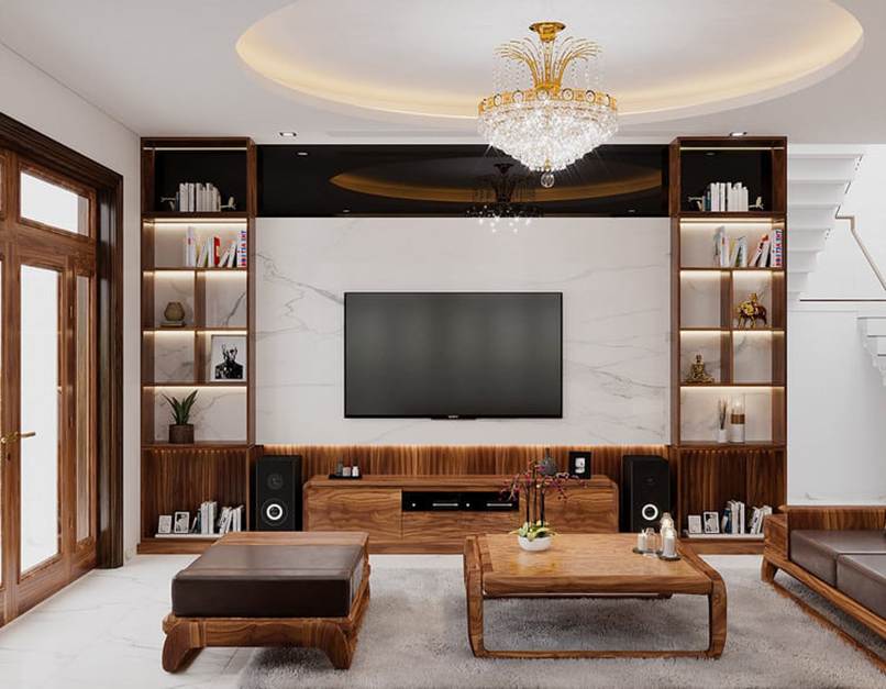 Bố trí tủ tường gỗ phòng khách đẹp theo phong thuỷ có thể mang đến tài lộc, sự hợp lý cho gia đình.