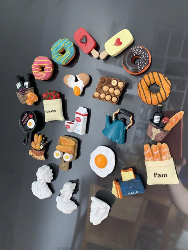 Những miếng nam châm để trang trí cho chiếc tủ lạnh thêm phần độc đáo được nhiều hộ gia đình ưa chuộng. Những miếng dán nam châm được cấu tạo bởi hai phần như: bề mặt ngoài thường có hình thù được làm bằng gỗ, nhựa dẻo, silicon.. và phần đế làm bằng nam châm sẽ là nơi tiếp xúc với tủ.