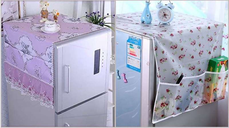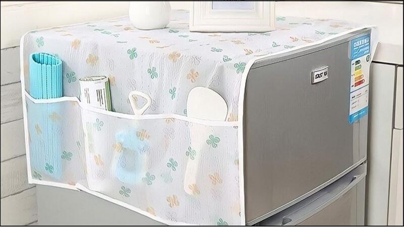 Những chiếc khăn trải trên tủ lạnh với chất lượng đa dạng để trang trí phần nóc là lựa chọn vô cùng phổ biến. Sử dụng tấm thảm này sẽ hạn chế được bụi bám trên nóc tủ cũng như giúp bạn dễ lau chùi hơn.