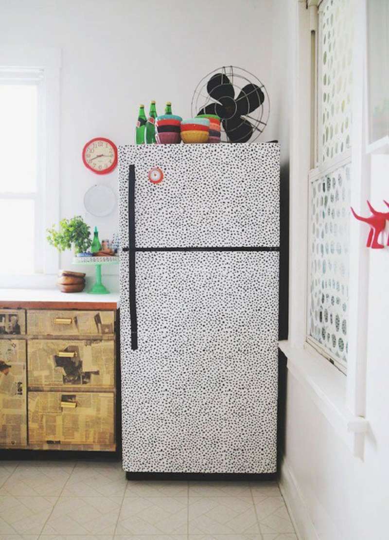 Thay vì chiếc tủ lạnh nhàm chán với màu sơn đơn thuần, bạn hoàn toàn có thể sử dụng sơn để làm mới không gian bếp cũng như tủ lạnh. Mẹo trang trí tủ lạnh này yêu cầu người làm phải tỉ mỉ, cẩn thận và khéo léo. Nhưng đây cũng là một ý tưởng vô cùng độc đáo cần thử.