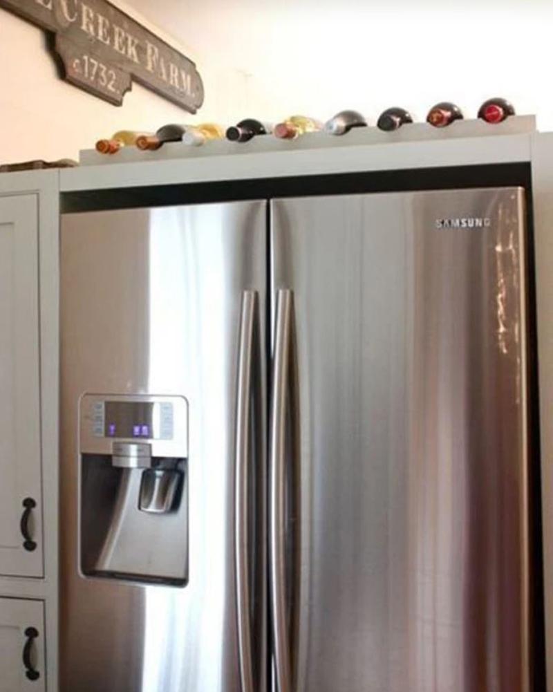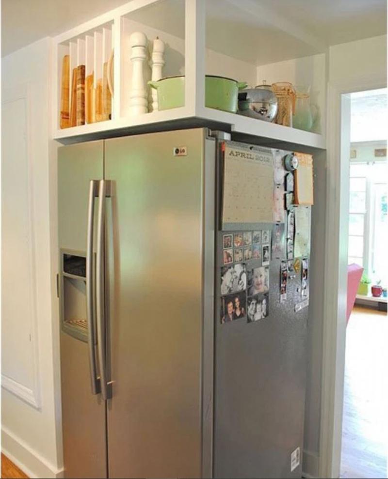 Cách này không chỉ giúp chiếc tủ lạnh vừa đẹp vừa tận dụng được không gian bên trên. Nhớ đừng để quá nhiều nhé, vì để quá nhiều sẽ khiến giảm tuổi thọ tủ lạnh.