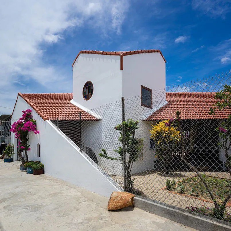 Màu sắc chủ đạo được sử dụng chính là ngói đỏ, tường trắng mang lại cảm giác xao xuyến, rộn ràng cho người nhìn.
