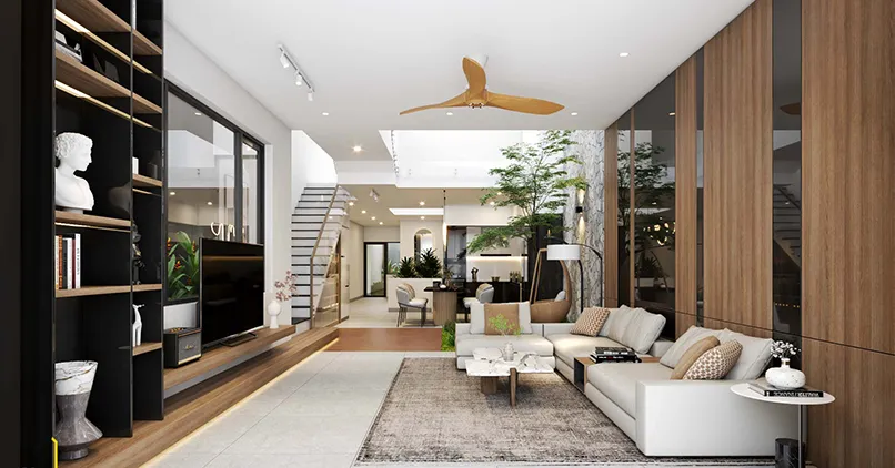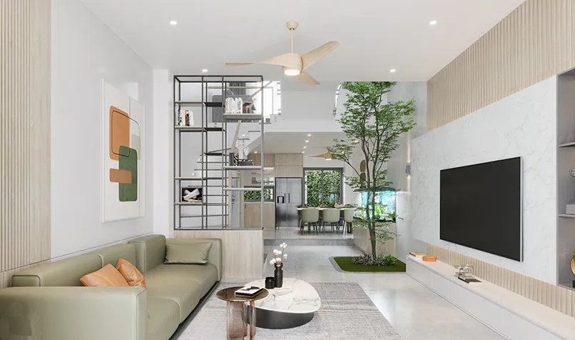 - Tạo ra một mối liên kết với thiên nhiên: Những ngôi nhà lệch tầng có thể tăng thêm không gian xanh cho ngôi nhà nhờ hệ thống ánh sáng, không khí của giếng trời.