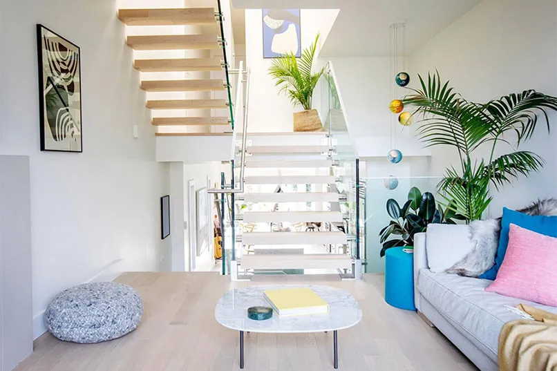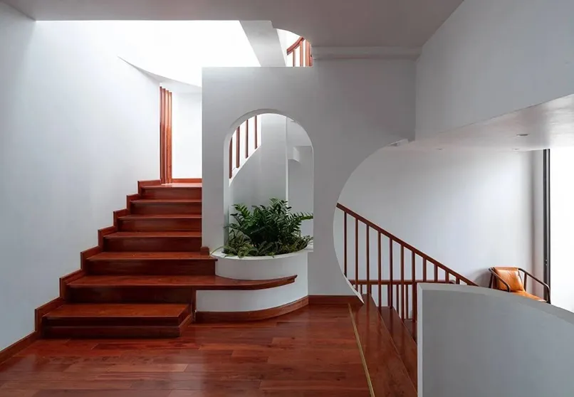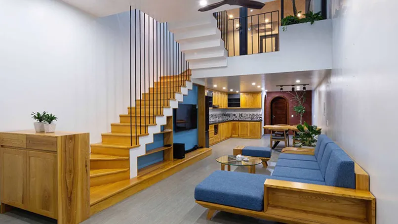 Thứ nhất, chú ý đến thiết kế cầu thang. Hướng di chuyển lên xuống của cầu thang không chỉ đảm bảo tính tiện lợi, an toàn mà còn mang lại năng lượng tích cực cho cả căn nhà. Nếu nhà có người già, trẻ nhỏ thì hãy bố trí ở nơi có độ cao ổn định để đảm bảo an toàn khi sử dụng.