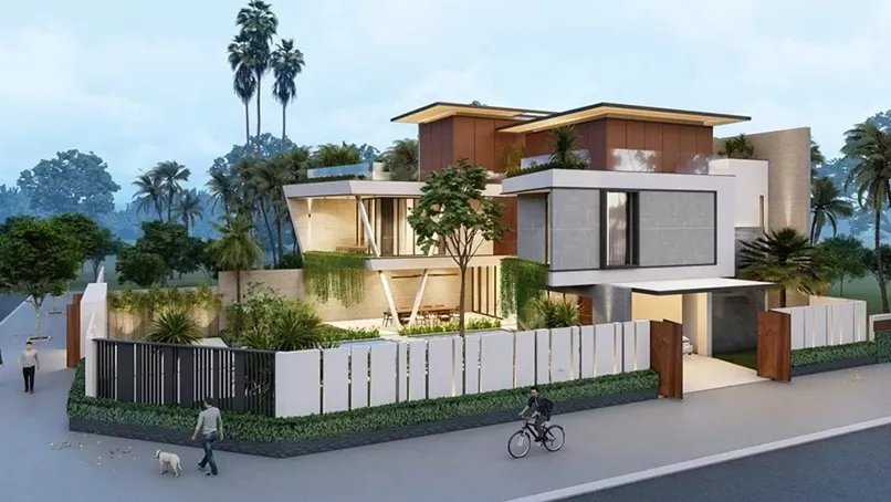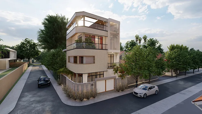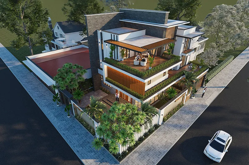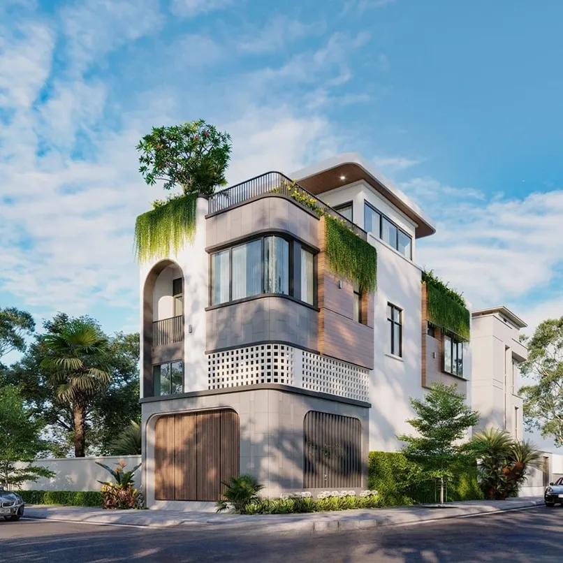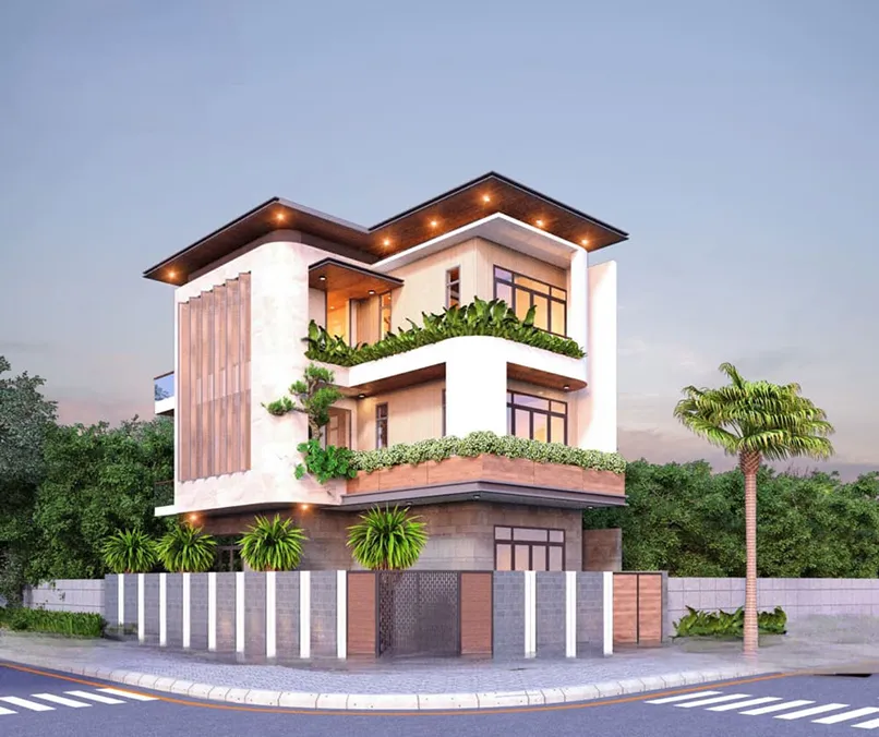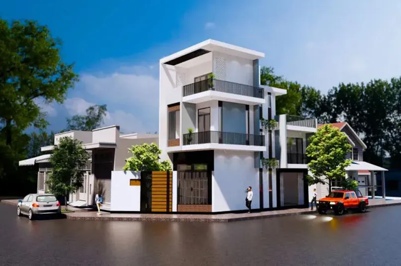 Để đảm bảo hiệu ứng thẩm mỹ cho những mẫu nhà lô góc 2 mặt tiền cần có hình dáng và kiến trúc độc đáo, thu hút sự chú ý của người nhìn.