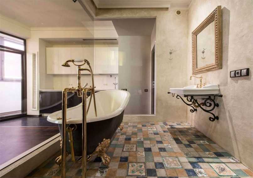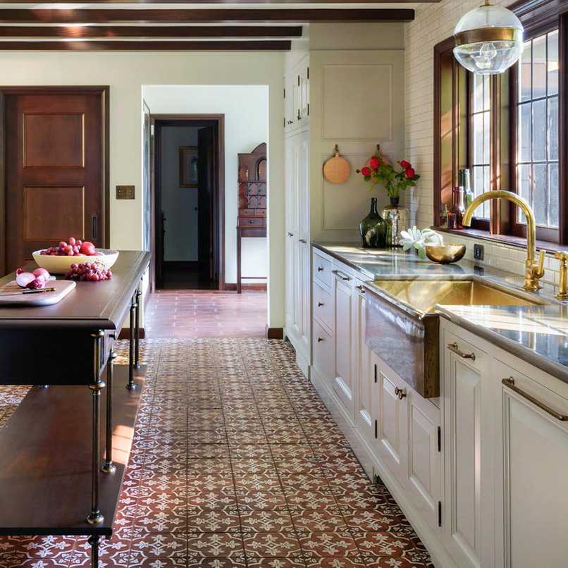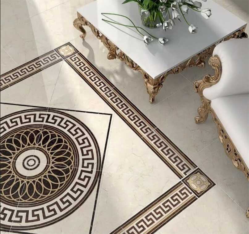 Nếu là phòng nhỏ thì sàn nhà được làm đơn giản, phủ nó bằng một vật liệu duy nhất như một tấm ván sàn hoặc gạch. Nếu kích thước đủ lớn thì nó được vẽ lên thanh lịch hơn với gạch nhỏ đầy màu sắc, hoa văn khảm.