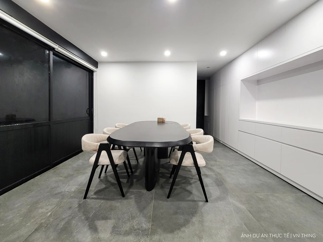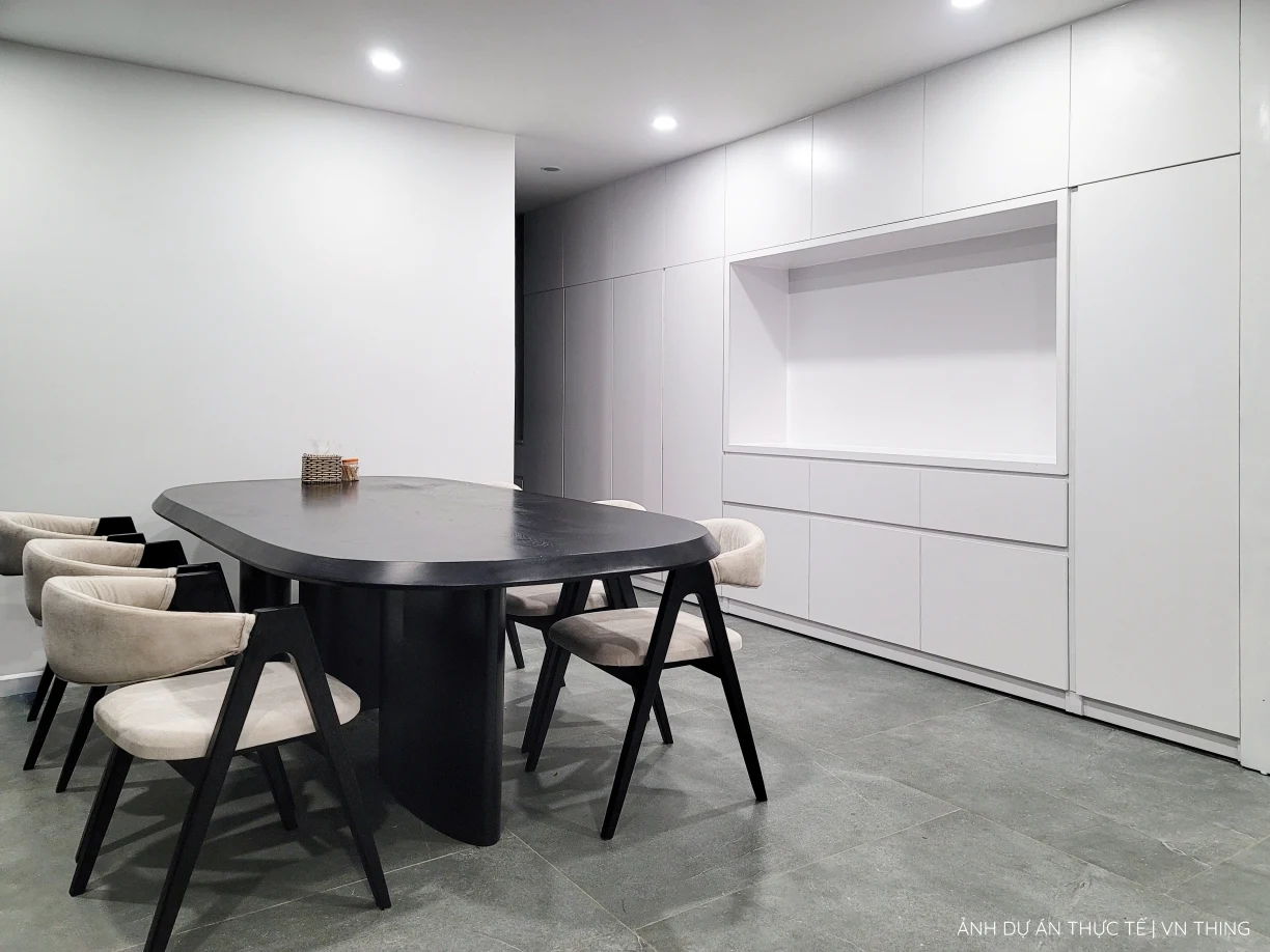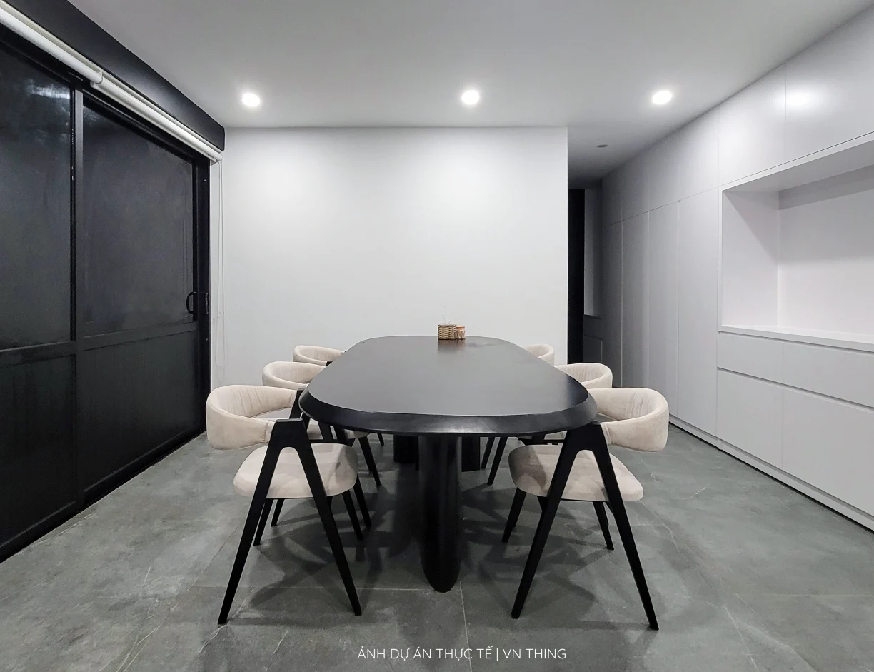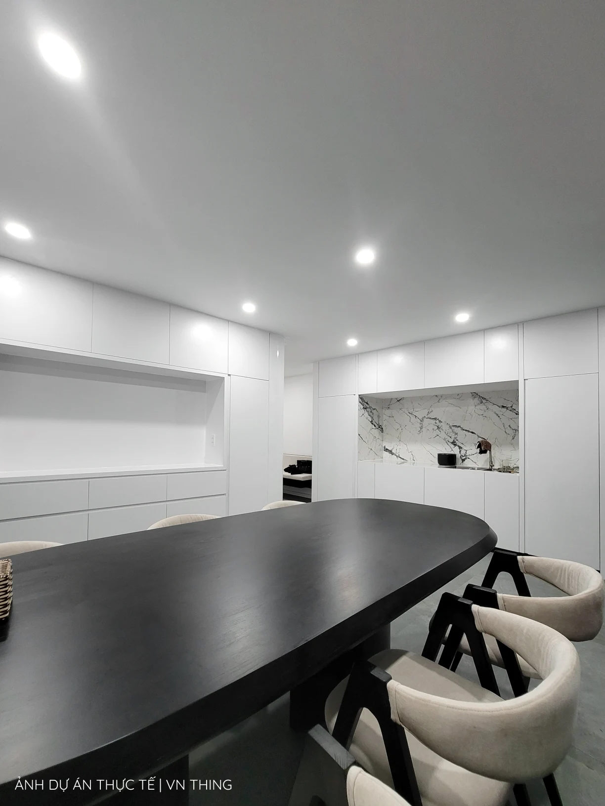 Sự tương phản rõ rệt giữa các yếu tố đen trắng tạo ra một tác động thị giác ấn tượng nhưng cân bằng, đảm bảo rằng mỗi món đồ nội thất sẽ tỏa sáng theo đúng nghĩa của nó.