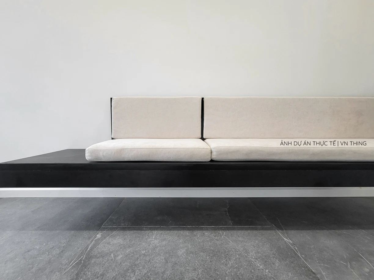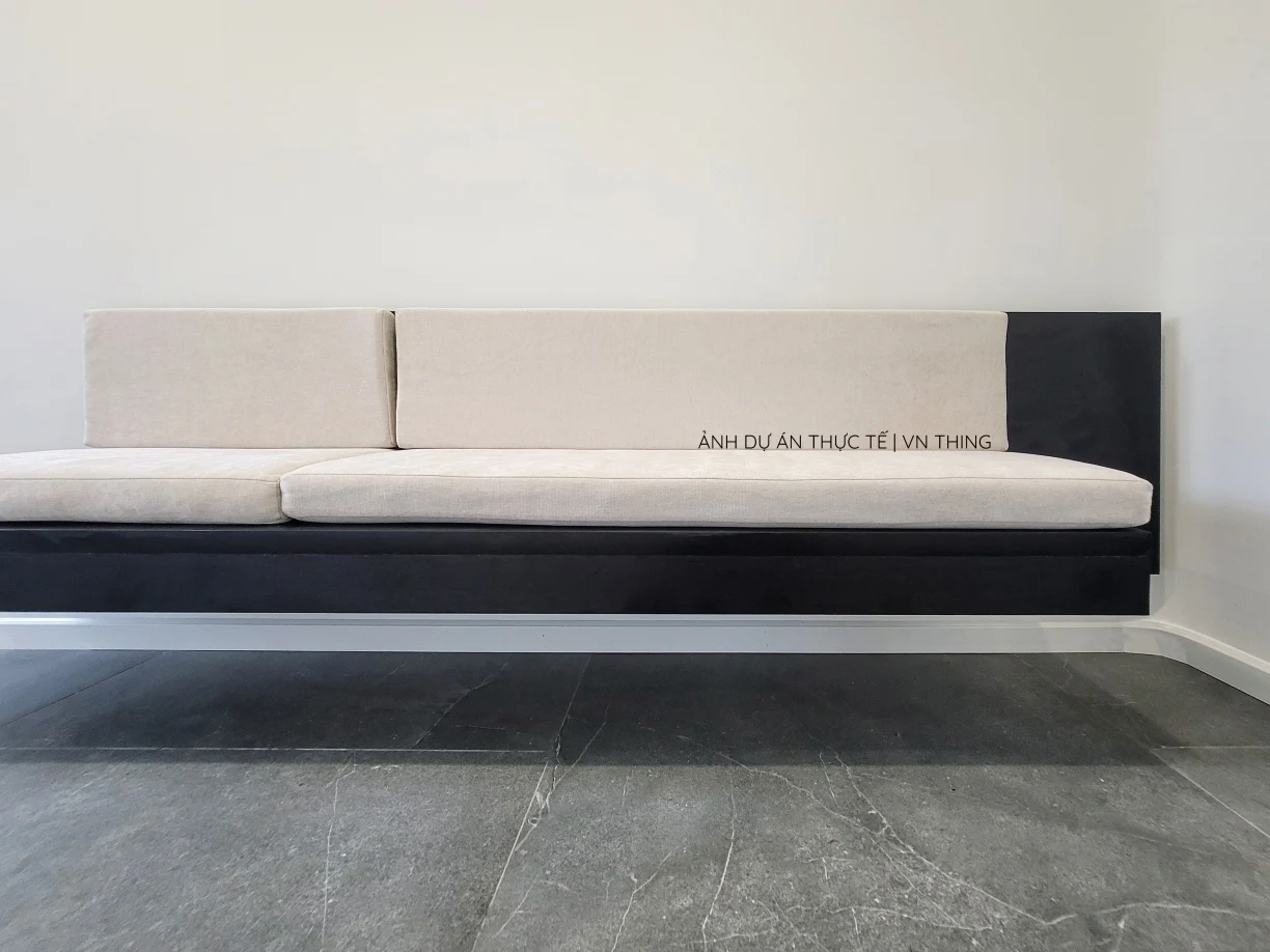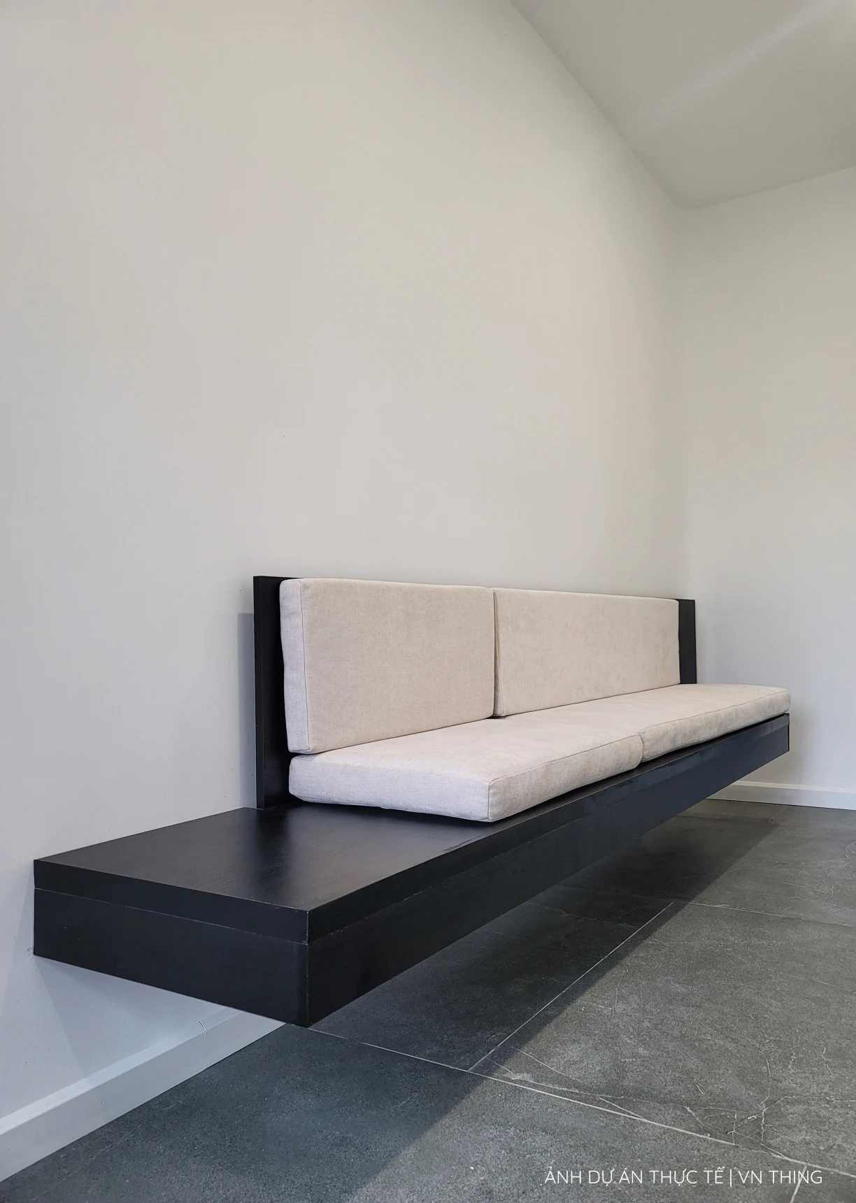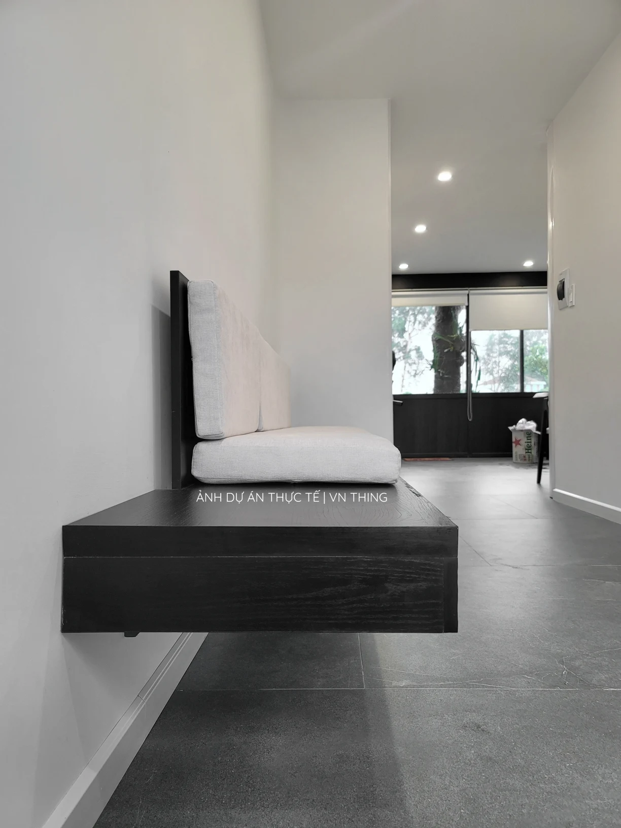 Thiết kế treo tường độc đáo mang lại cho ghế sofa một vẻ ngoài ấn tượng, tạo cảm giác như nó đang lơ lửng.
