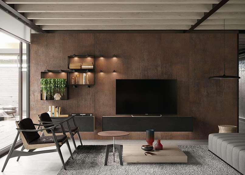 - Vị trí ô trang trí tường phòng khách phải được cân nhắc đúng nơi để không ảnh hưởng đến cấu trúc ngôi nhà. Thường thì có thể bố trí 2 bên tivi, kệ sách hay tủ rượu, dưới tiv, sau ghế sofa hay trên bức tường cạnh sofa.