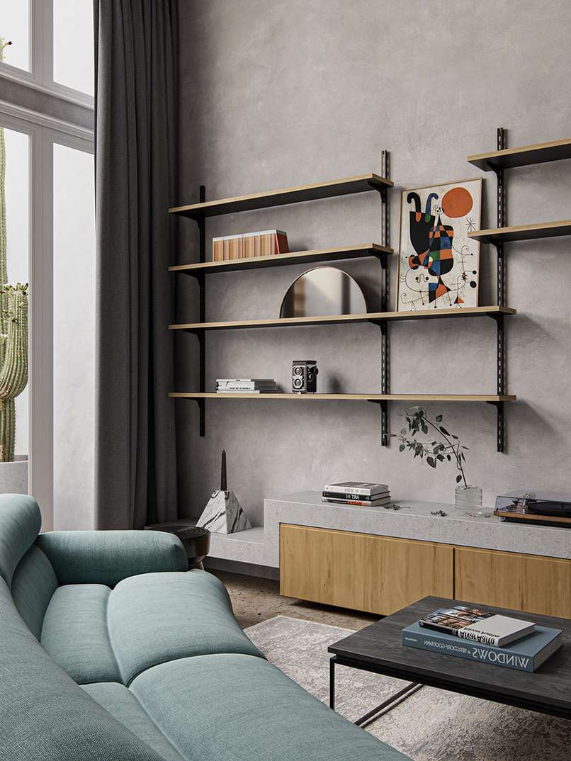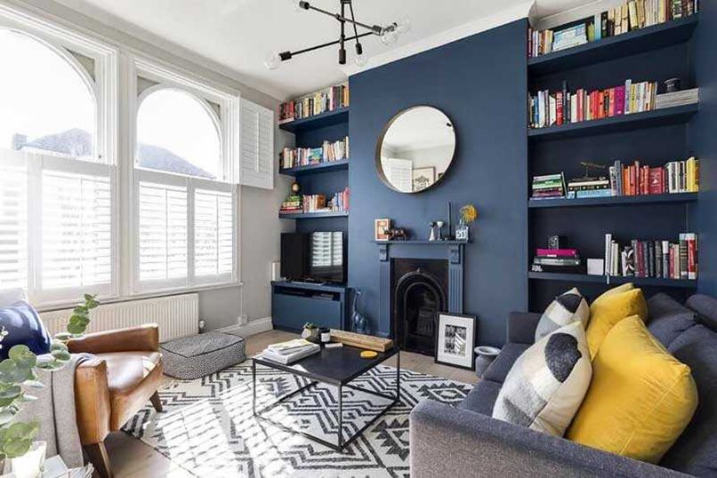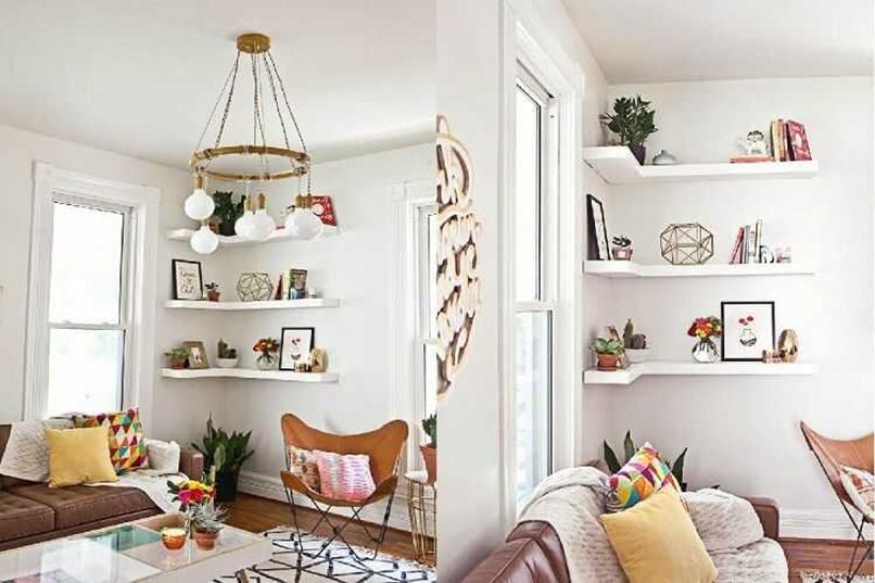 - Có thêm một kệ trưng bày các món đồ yêu thích. Bạn có thể tha hồ thể hiện sở thích của mình trên các ô trang trí tường phòng khách này. Nhưng cũng cần chú ý bài trí sao cho khoa học để tránh sự rối rắm, bí bách cho căn phòng nhé.