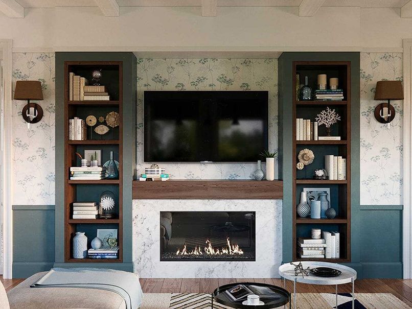 - Cân bằng bố cục không gian. Những ô trang trí tường phòng khách không những tiết kiệm diện tích mà lại còn làm căn phòng có bố cục trở nên hài hoà hơn. Bạn cũng nên thiết kế nhà ở để căn phòng đẹp hơn.