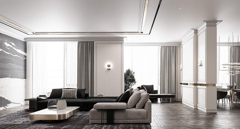 Một căn hộ rộng lớn thì cách vẽ phối cảnh nội thất cũng trở nên đơn giản hơn khi có thể tự do thoải mái bố trí nội thất theo các phong cách khác nhau.