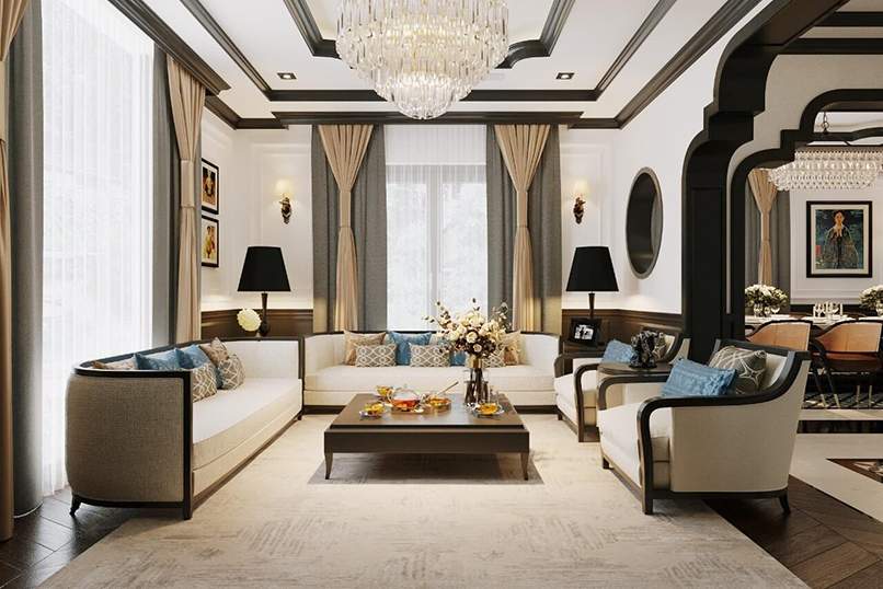 - phối cảnh nội thất phòng khách cho biệt thự: Những bản vẽ phối cảnh nội thất ở biệt thự tường được làm theo phong cách thiết kế tân cổ điển và cổ điển giúp không gian trở nên sang trọng và đẳng cấp hơn.